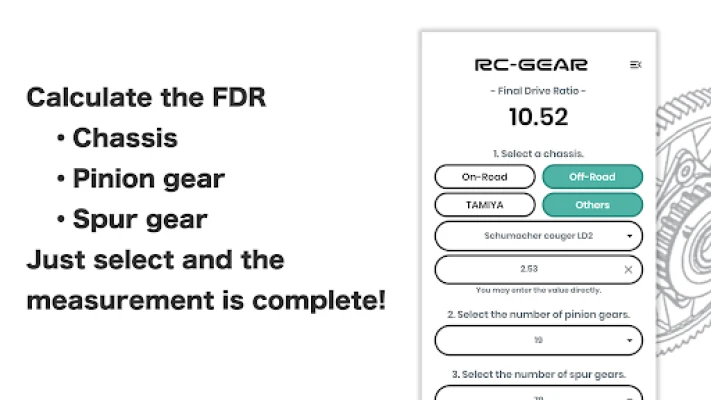 The calculation of the final drive ratio of the RC car is...