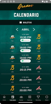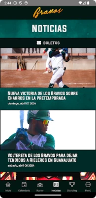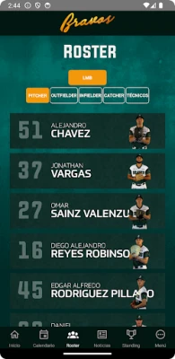 Ver los resultados de cada uno de los juegos de la liga con sus detalles en vivo. Tabla de posiciones de la liga. Compra de boletos para todos los juegos del equipo. Boleto electrónico para ingresar al estadio fácilmente. Roster Calendario Notificaciones