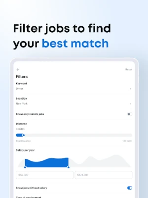 Use Jooble to research job roles based on your search queries and set your preferred geographical location as per your needs. You can set geographic preferences to find the convenient country/state/city/and select jobs that fit your experience, skills and talents. Download the app today, create your account without a Jooble resume, and get instant access to the best job search service.