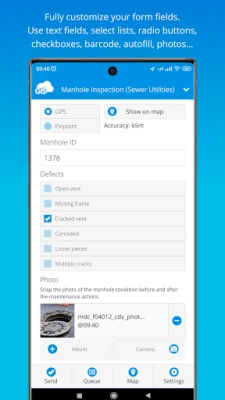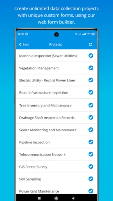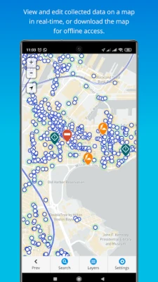 The mobile app enables you to accurately record data, online or offline, by filling in digital custom survey forms. You can create an unlimited number of your own unique forms in the user-friendly form builder, in the connected web app (Mobile Data Collection Portal).