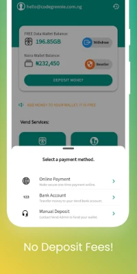 All NGN deposits on Vend are FREE! We do not charge anything on deposits. If you deposit NGN1,000, you get exactly NGN1,000 in your Vend wallet. Your funds are 100% SAFE. Nobody does it better!